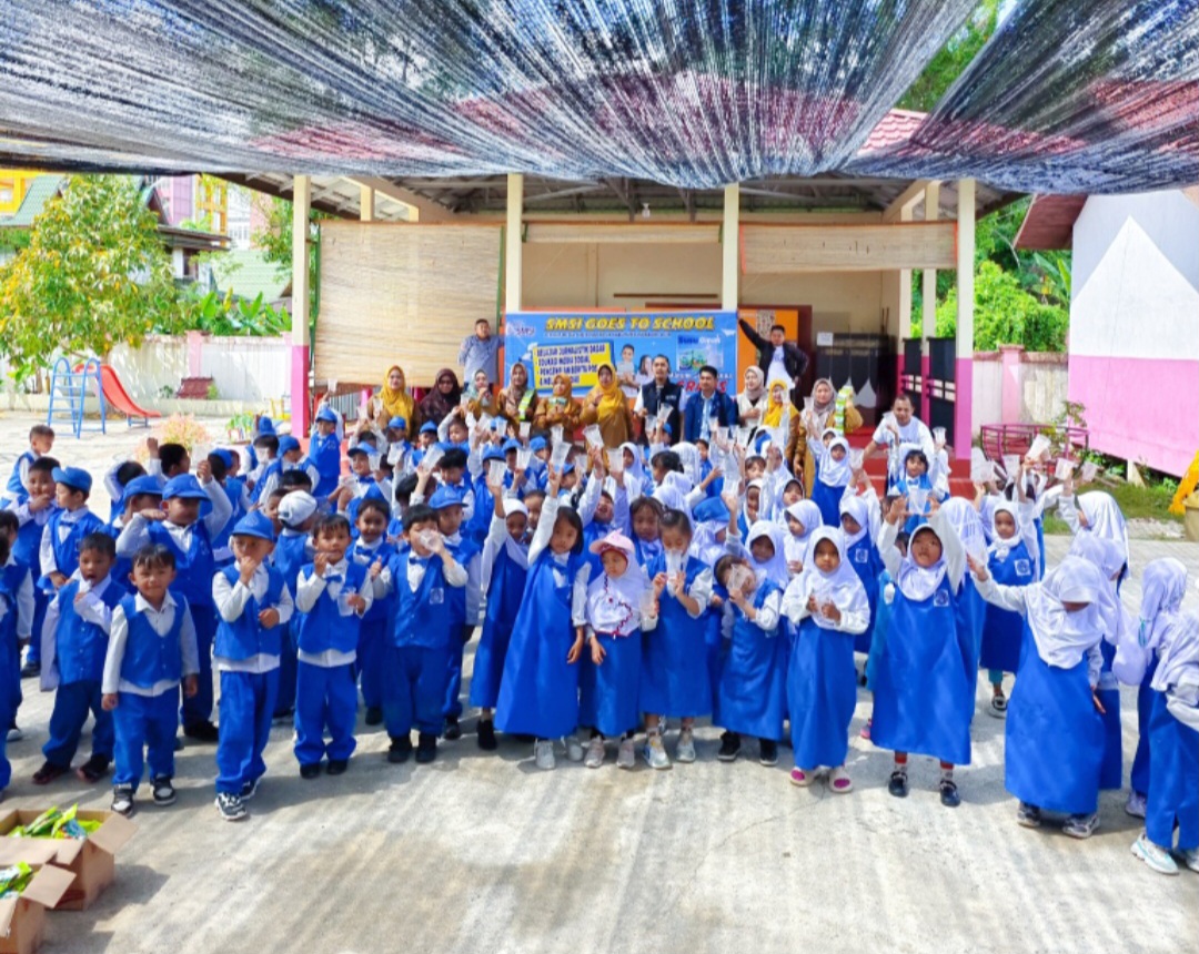 RIAUPEDIA.COM TEMBILAHAN - Bentuk kepedulian terhadap dunia pendidikan dan kesehatan anak, Serikat Media Siber Indonesia (SMSI) Kabupaten Indragiri Hilir (Inhil) kembali melaksanakan program “SMSI Goes To School” dengan membagikan susu Gizi Nasional (Ginas) di TK Negeri Pembina Tembilahan, Selasa (21/10/2025) pagi.