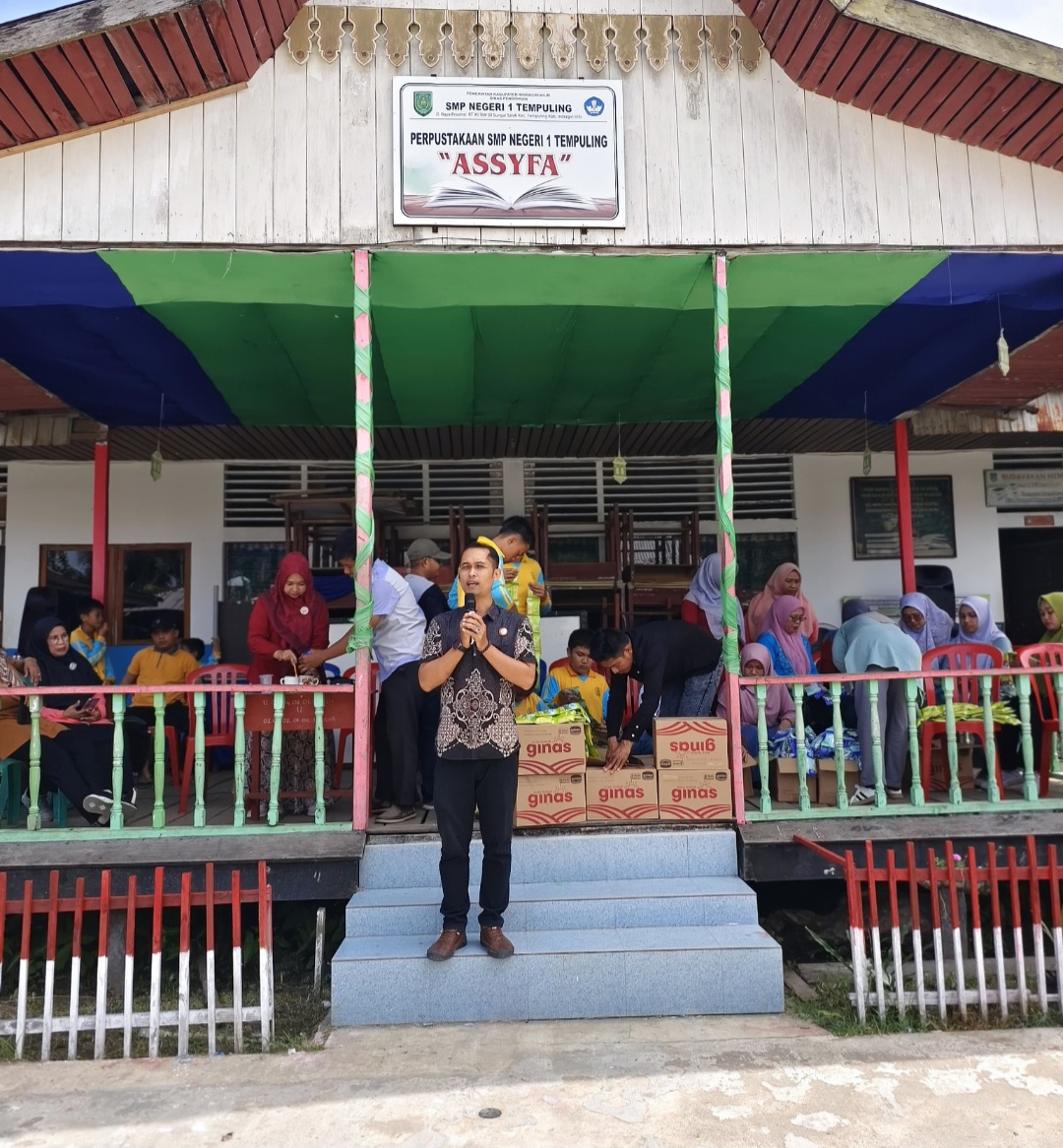 RIAUPEDIA.COM, INHIL - Terus berkomitmen membangun generasi muda dengan keunggulan sumber daya manusia, Serikat Media Siber Indonesia (SMSI) Kabupaten Indragiri Hilir (Inhil) kembali menyambangi sekolah-sekolah di daerah tersebut. Kali ini, SMSI Inhil berkolaborasi bersama Jaringan Media Siber Indonesia (JMSI) Inhil menyalurkan ribuan susu Ginas gratis kepada siswa-siswi SMP Negeri 1 Tempuling, sekaligus menyaksikan kegiatan Happy Day, Sabtu (25/10/2025).