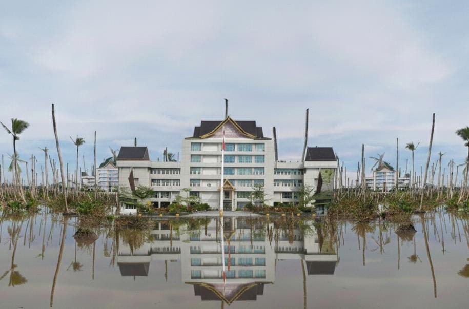 Ket foto: Kantor Bupati Inhil dan rusaknya kebun kelapa rakyat