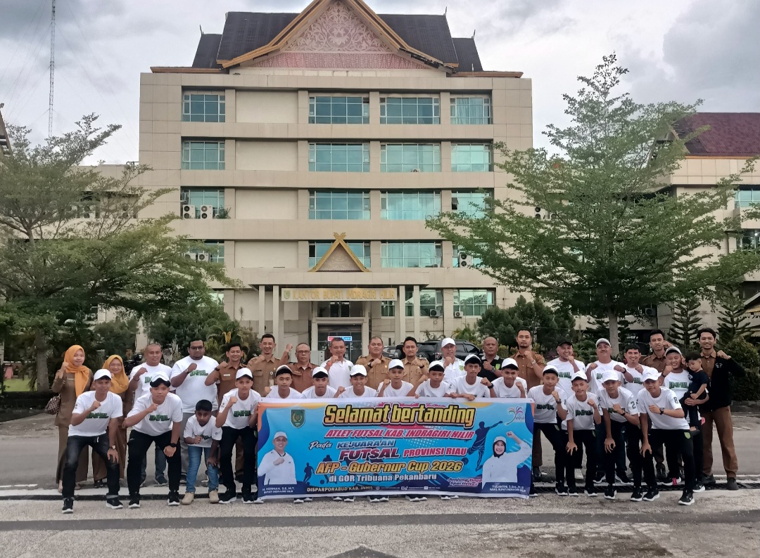 RIAUPEDIA.COM, TEMBILAHAN - Bupati Indragiri Hilir (Inhil) diwakili staf Ahli Bidang Ekonomi TM.Syaifullah secara resmi melepas kontingen futsal yang akan berlaga dalam turnamen Gubernur Cup 2026. Kontingen ini terdiri dari 14 pemain, dua orang pelatih, serta empat orang ofisial dan manajer.