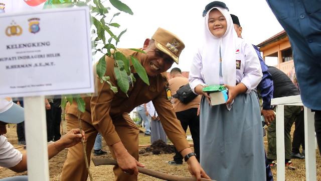Di akhir kegiatan, Bupati Herman, Wakapolda Riau, Kapolres Inhil, serta Forkopimda melakukan penanaman pohon di area sekolah sebagai simbol dimulainya gerakan penghijauan terpadu di Kabupaten Indragiri Hilir.